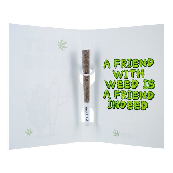 No hay nada malo en expresar lo mucho que una amistad significa para ti, y esta es la mejor forma de hacerlo. Nuestra tarjeta “Best Buds” muestra ese mensaje y unos personajes entrañables en la parte delantera y en el interior, ¡y además tiene un espacio para poner un porro! Así que, cuando tu colega la haya leído, podréis encenderlo y disfrutar de una buena fumada.