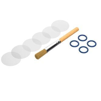 El kit de piezas de desgaste de Storz & Bickel contiene todo lo que necesitas para limpiar y cambiar los principales componentes de la cámara de llenado del Volcano Hybrid, como filtros de repuesto, anillos para la tapa y cepillo de limpieza.