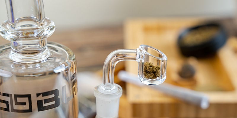 Dabbear hachís es un poco más complicado, ya que se necesita un rig para dabs y un mechero soplete. Los rigs para dabs son unos dispositivos de vapeo que parecen bongs elegantes, pero en lugar de cazoleta, tienen un clavo para dabbing. Acerca la llama del mechero soplete al clavo hasta que se ponga al rojo vivo. Coloca la cúpula de vidrio sobre el clavo (si la tiene). Usa el dabber para aplicar un poco de hachís al clavo dentro de la cúpula. Ya puedes inhalar y disfrutar de tu hachís. Ten en cuenta que el dabbing es muy potente, por lo que podría abrumarte si es la primera vez que lo pruebas.