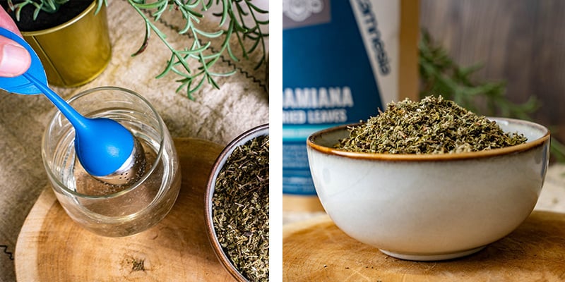 Si es la primera vez que consumes damiana, limítate a las cantidades más bajas de este rango. A algunas personas les basta con pequeñas cantidades.